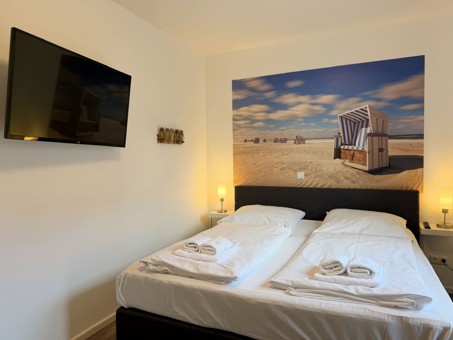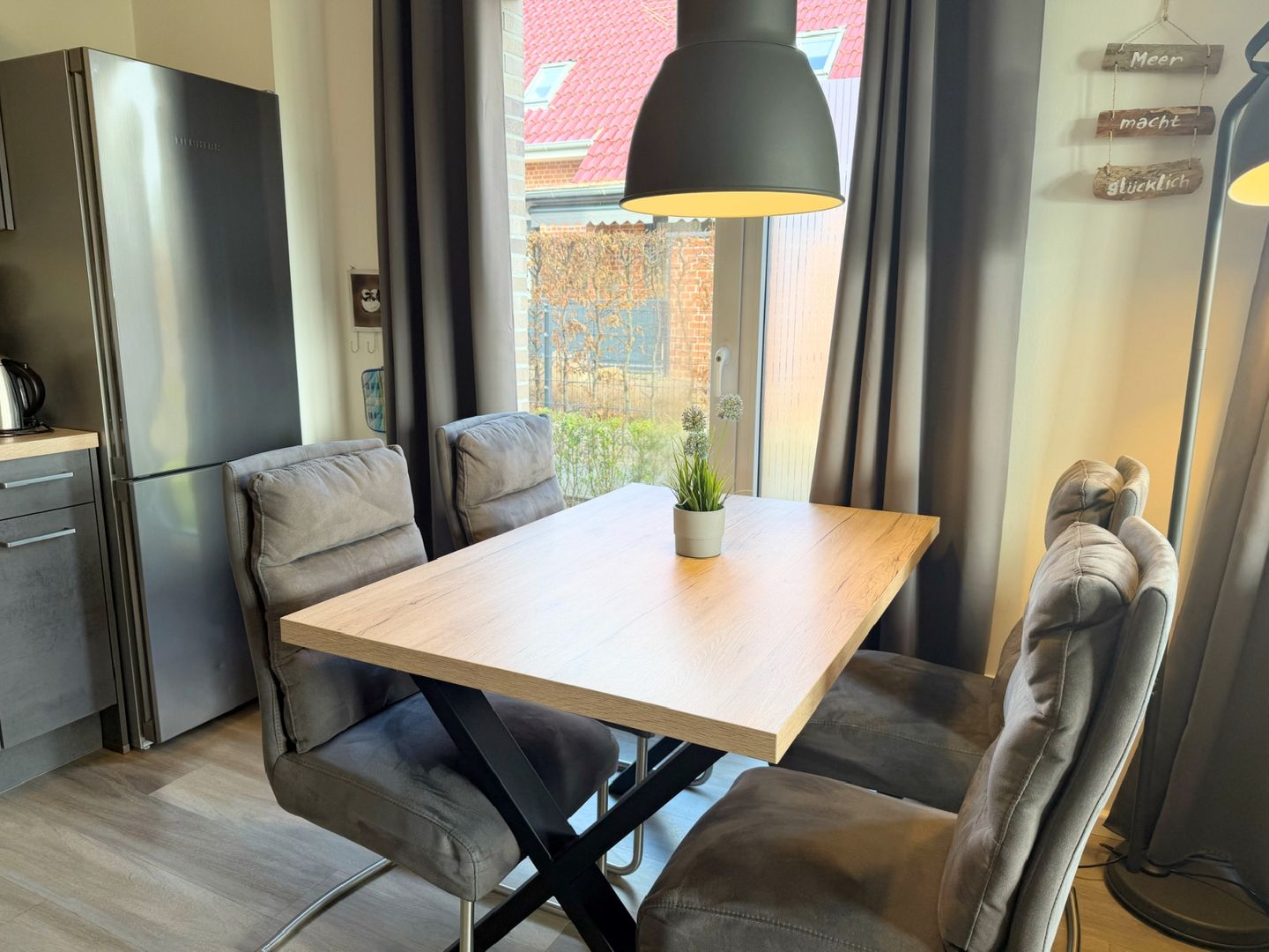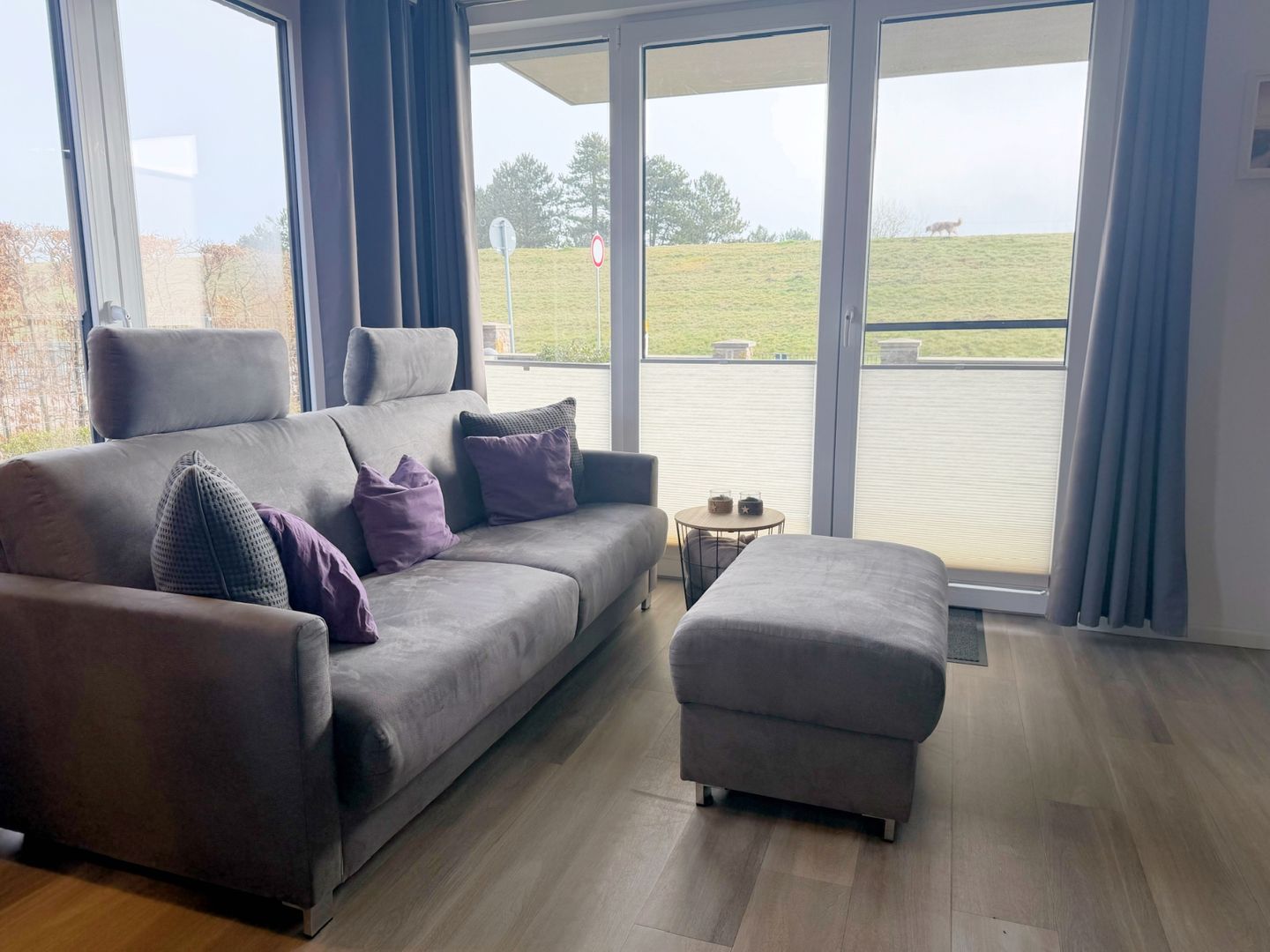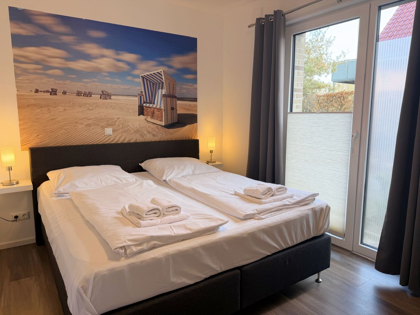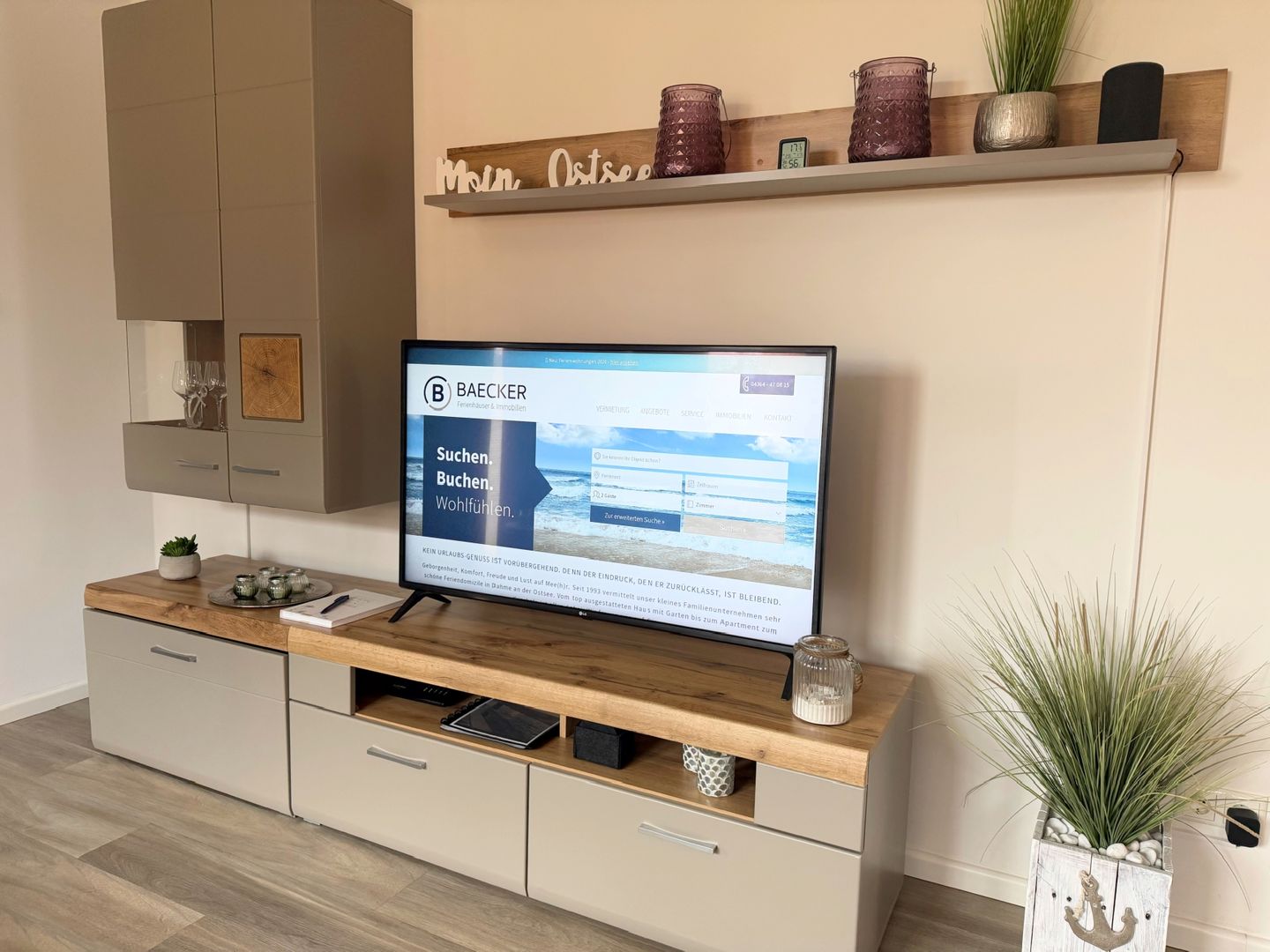 Neubau! Top ausgestattete, sonnige und ruhige 56 m² große 2 Zimmer Ferienwohnung für zwei bis vier Personen direkt am Deich von Dahme. Die Wohnung liegt im Parterre und hat eine schöne Terrasse mit angrenzendem kleinen Garten, der mitbenutzt werden darf. Ob junges Paar, junge Familie, Best Agers oder Senioren, die Wohnung in unmittelbarer Strandnähe bietet allen den perfekten Ort für die schönsten Tage im Jahr. Der Strand für das vierbeinige Familienmitglied ist keine 200 m entfernt. Die großen Fenster lassen viel Helligkeit in die gemütliche Wohnung, in der es an nichts fehlt, was einen Urlaub lebens-und liebenswert macht. Die moderne, in den Wohnraum offen integrierte Küche mit Spülmaschine, Induktionskochfeld, Senseo- sowie Kaffeemaschine und vielen weiteren Annehmlichkeiten wird Sie überzeugen. Hier befindet sich auch das komfortable Schlafsofa (160x200 cm mit Ergoflex Lattenrost und hochwertiger Matratze) für zwei Personen. Im Schlafzimmer befindet sich neben dem zweiten TV ein bequemes Boxspringbett (180x200 cm). Das Badezimmer überzeugt mit viel Tageslicht und großer, begehbarer Dusche und einem beheizbaren Handtuchhalter. Außerdem finden Sie hier den Waschtrockner. Zur Wohnung gehört der eigene PKW-Stellplatz direkt am Haus. Die Fußbodenheizung sorgt auch in der Übergangs- und Winterzeit für eine wohlige Wärme. Stilsicher, stylisch und strandnah - wünscht man im Urlaub me(e)(h)r?