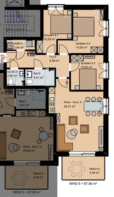 Ferienwohnung · 87 m2 · 4 Zimmer · 3 Schlafzimmer · 6 Personen