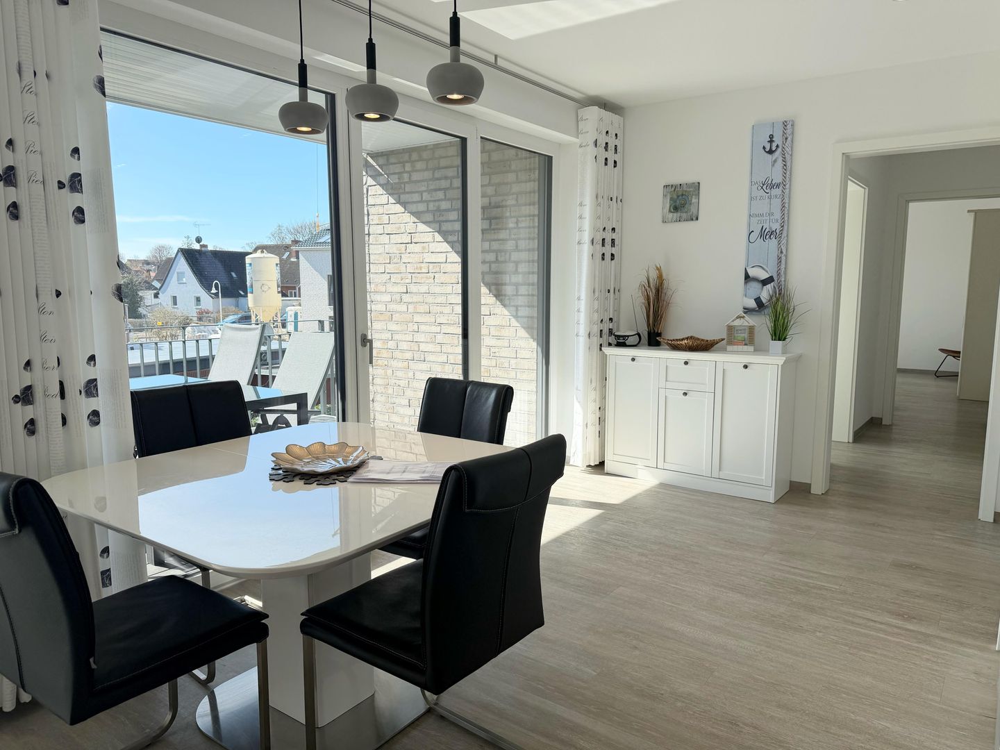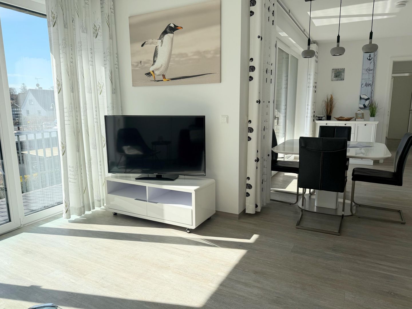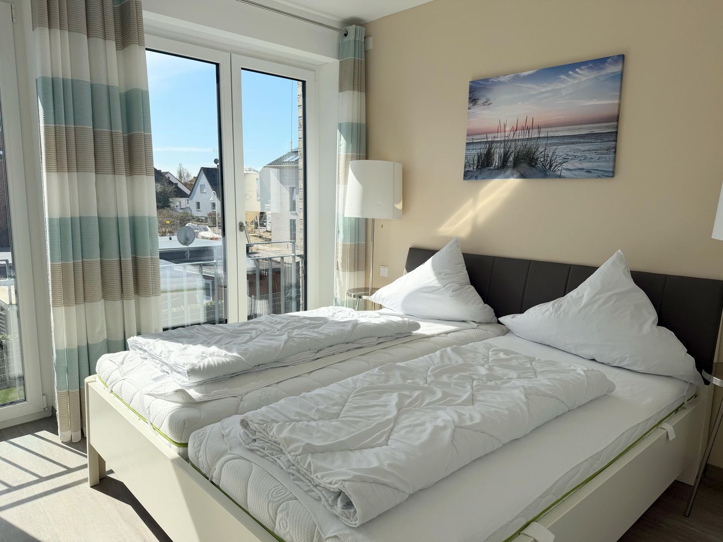 Sehr schöne, strandnahe nach Süden ausgerichtete Ferienwohnung direkt hinter dem Deich. Liebevoll eingerichtete drei Zimmer Wohnung im 1. OG mit Balkon in unmittelbarer Strandnähe. Die Wohnung verfügt über zwei Schlafzimmer, beide mit einem Doppelbett (2 x 90x200 cm), sowie ein Wohn-/Esszimmer mit direktem Zugang zum großzügig angelegten Südbalkon. Sehr gute Raumaufteilung und eine hochwertige Ausstattung mit Smart-TV, bodentiefer Dusche, Fön, Spiegel im Badezimmer, Waschmaschine im Abstellraum und ein Gäste-WC vervollständigen diese Komfortwohnung. Die komplett ausgestattete Küche ist offen in den Wohnraum integriert. Der Balkonzugang ist sowohl vom Wohnzimmer, als auch vom Essbereich möglich. Die Fußbodenheizung sorgt für ganzjährig wohlige Wärme. Der PKW-Stellplatz für diese bezaubernde Wohnung ist direkt links neben dem Haus, das insgesamt aus acht Ferienwohnungen besteht. Hier findet der Gast auch die Unterstellmöglichkeit für mitgebrachte Fahrräder. In dieser Wohnung können Sie Ihren Ostseetraum verwirklichen und wunderschöne Urlaubstage verbringen! Einziehen, wohlfühlen… und ab ins Meer! Gerne dürfen Sie Ihren lieben Hund mitbringen.